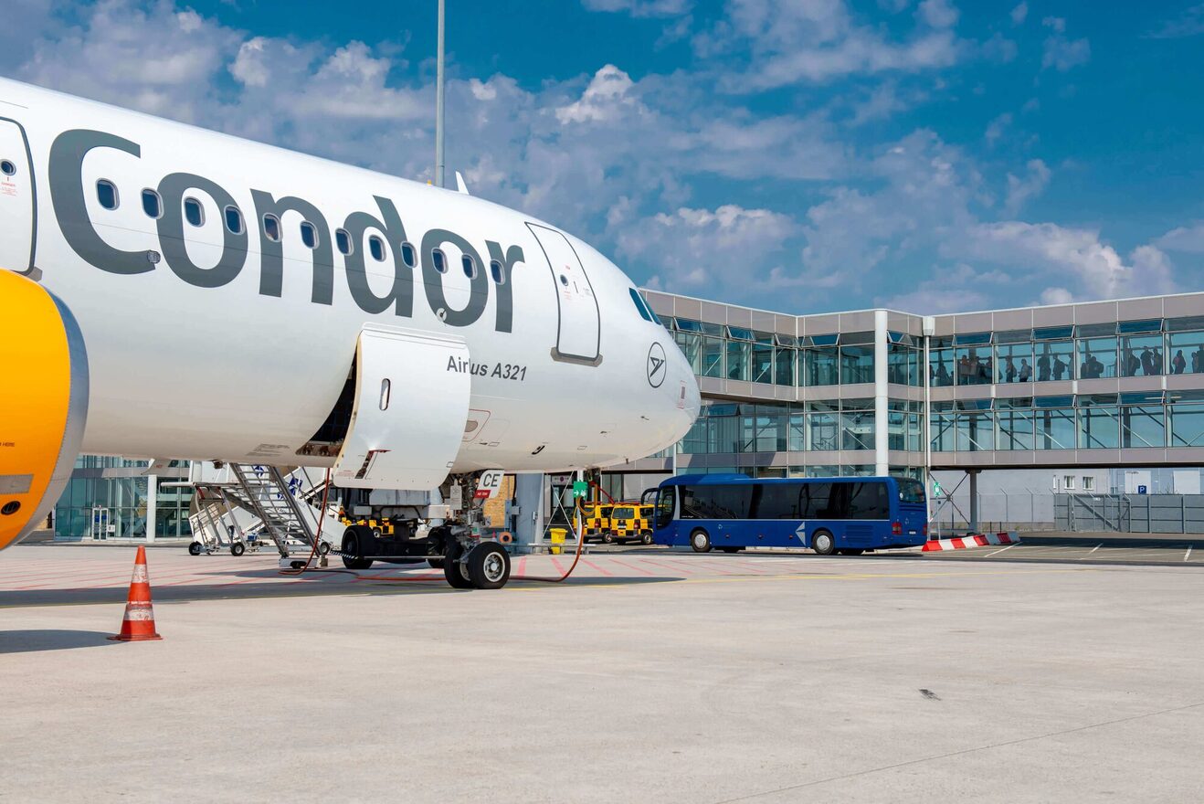 Mit dem Reisebus über das Rollfeld